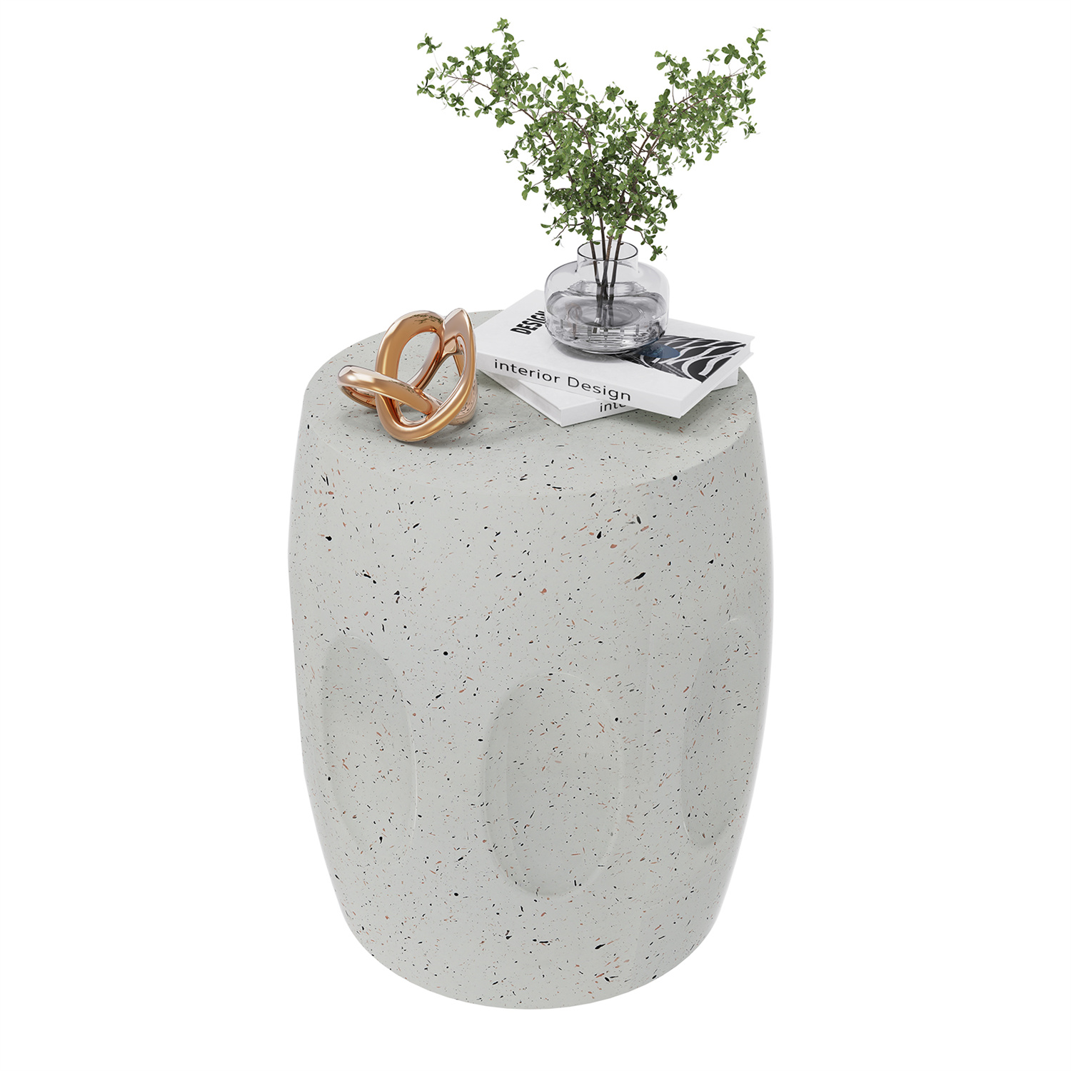Mesa auxiliar Wisfor de hormigón, moderna y ligera, de 34 x 46 cm, redonda, color blanco roto